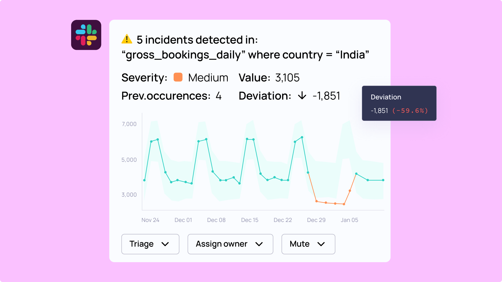 Most companies simply don’t have the time to monitor the dashboards as much as they need. Slowly drifting metrics or critical business anomalies are easily overlooked. Looker’s built-in alerting is useful but often too simplistic for teams managing complex, high-volume data environments. That’s why companies like Volt and Alliance Bernstein are turning to Validio. By adding a machine learning powered alerting system and notification workflow on top, analysts can catch both real-life changes and data quality issues before they impact the business. In this article, we’ll explore Looker’s alerting limitations and how Validio fills the gaps—so you can move beyond just dashboards and into proactive, intelligent data monitoring.