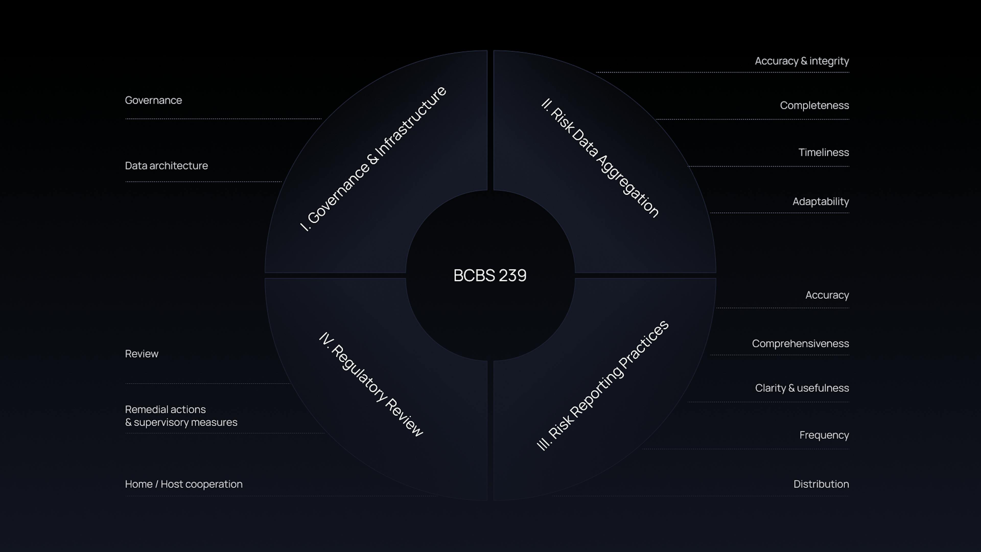 BCBS 239 is organized into four key sections, encompassing 14 principles that set the standard for robust risk management.