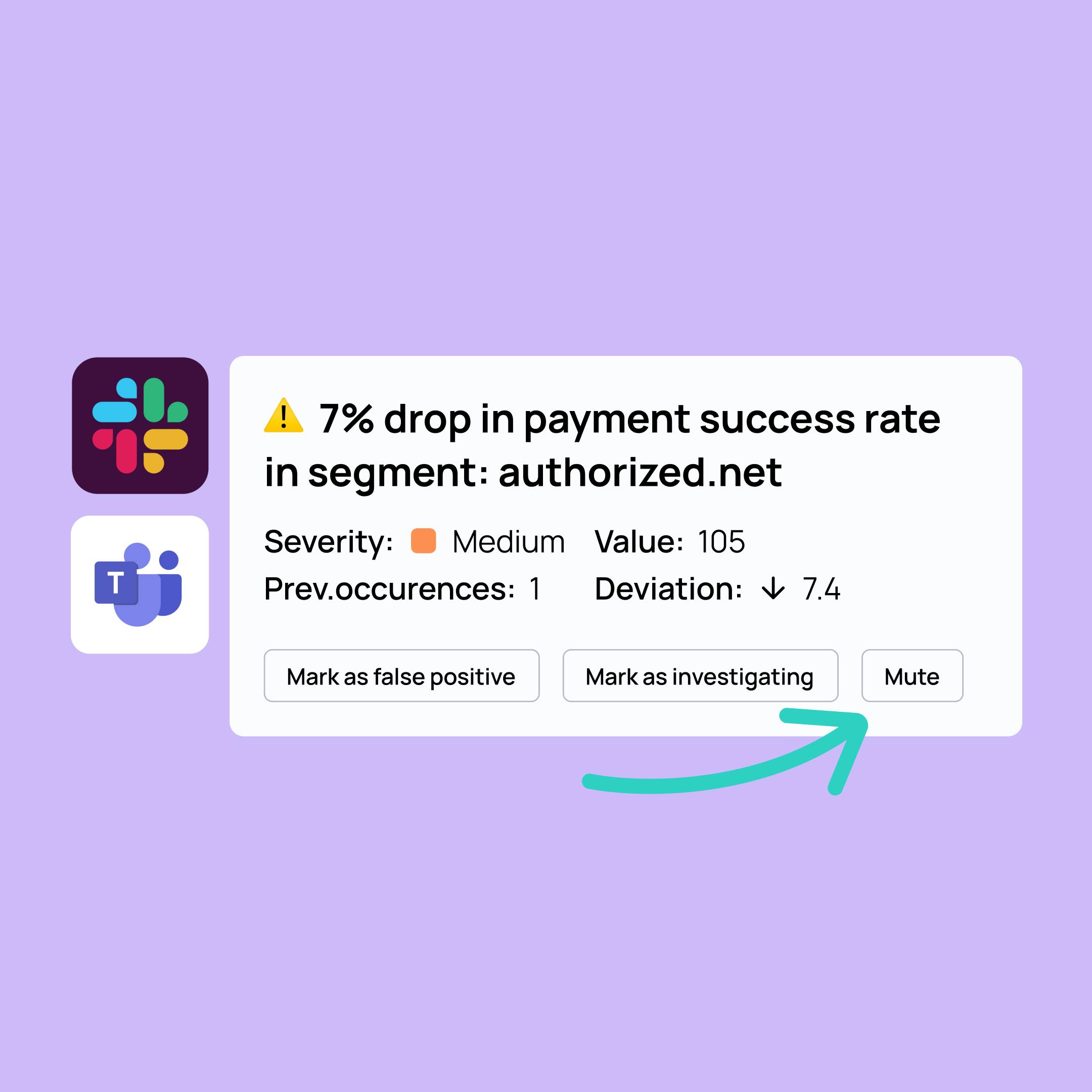 Once an alert is triggered, you receive a notification in Slack or Teams. Mute lets you temporarily pause these notifications for a timeframe that suits you. Whether it’s for a few minutes, hours, or a couple of days, you decide when you’re ready to tackle these incidents. Once the mute duration expires, you’ll be alerted again to ensure nothing slips through the cracks. It’s as straightforward as it sounds: a few clicks, and you’re set to focus on the tasks at hand.