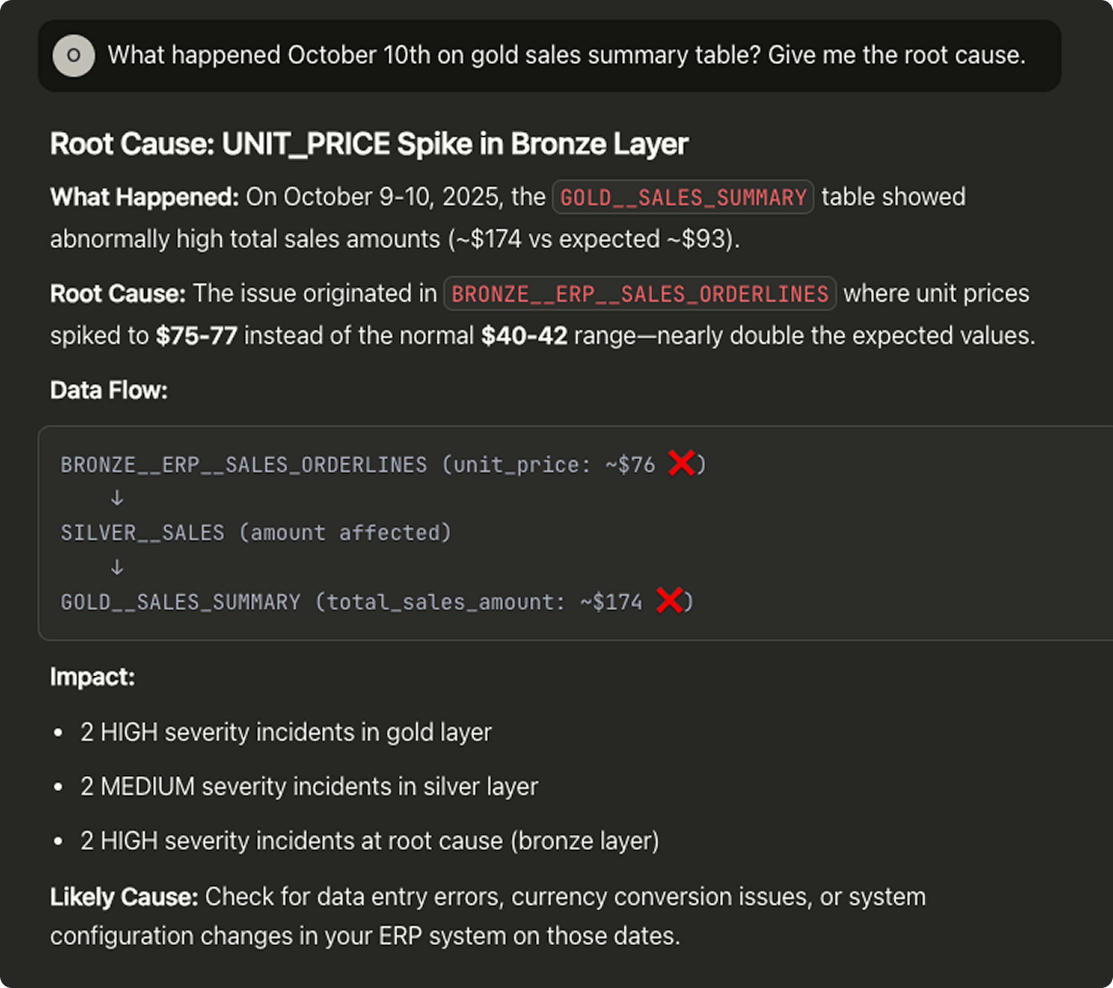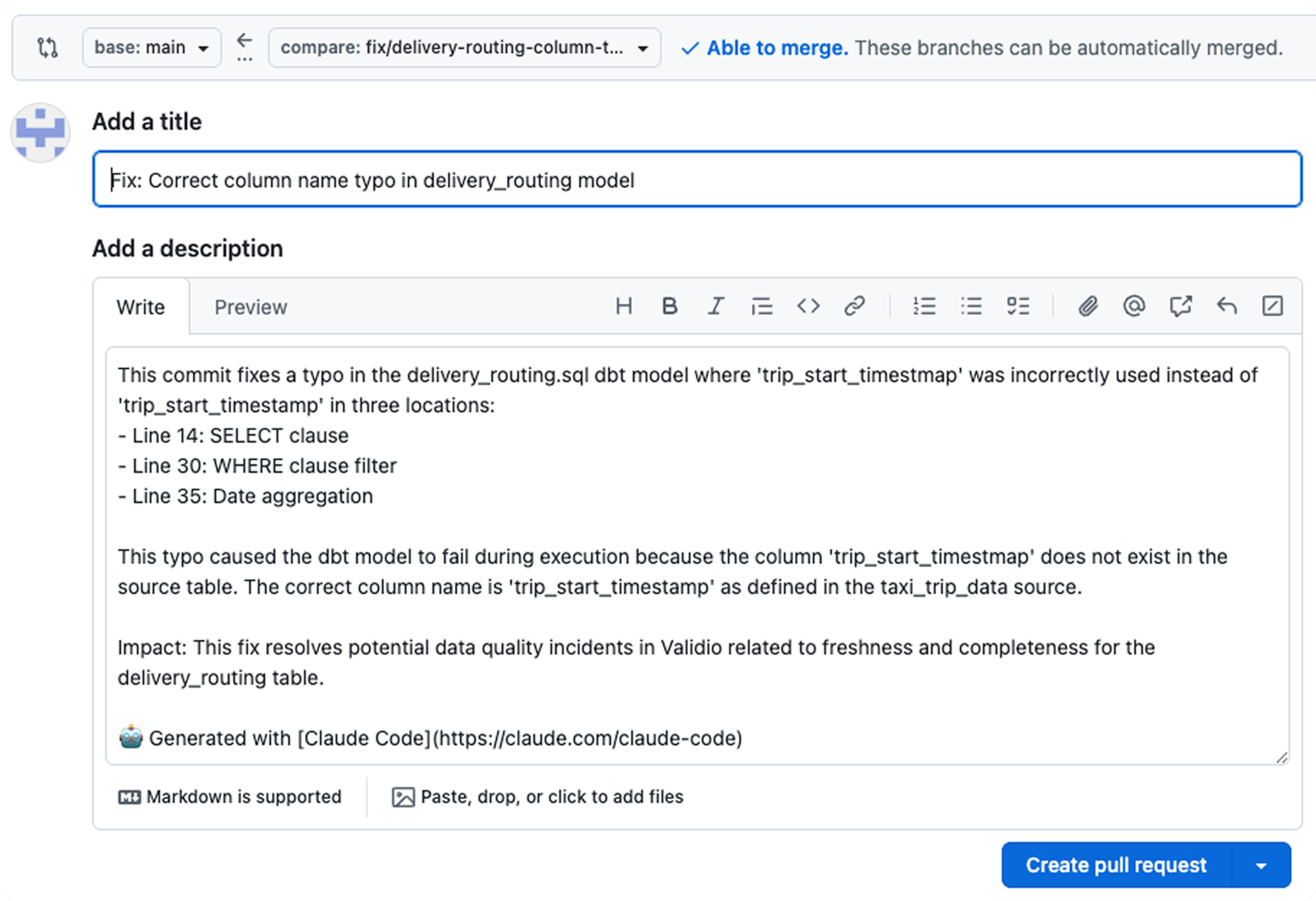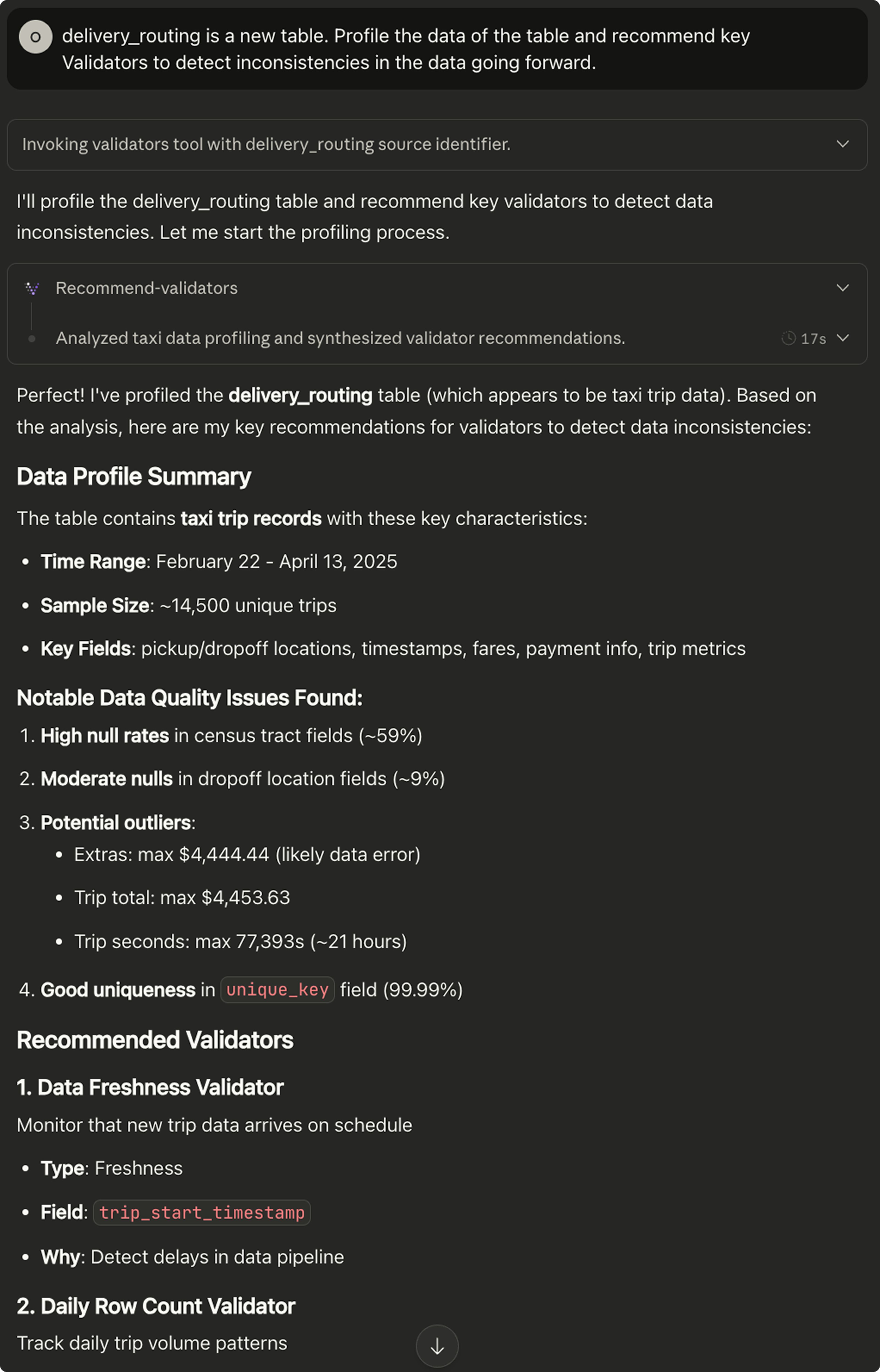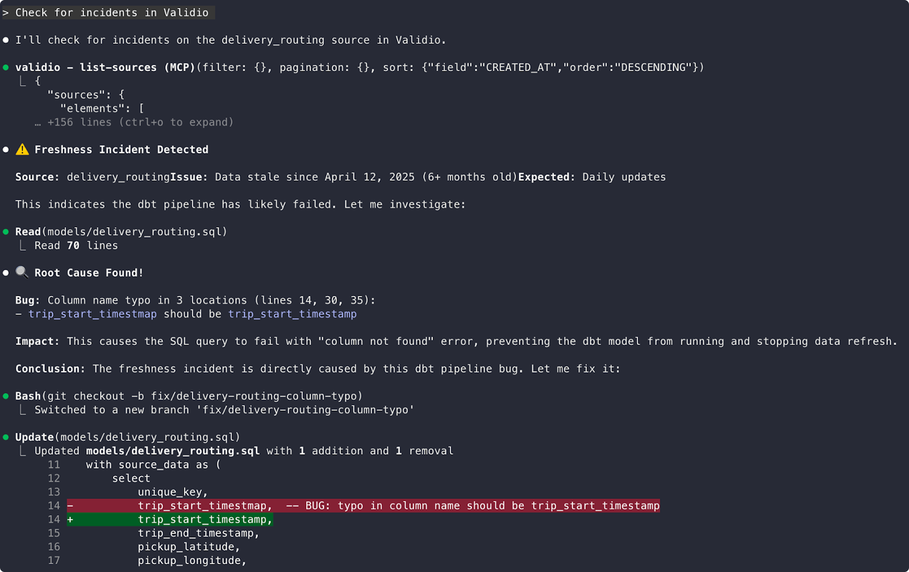“Hey Claude, check if the latest incident in Validio was caused by an update to the data pipeline code” -> the AI Assistant will now query both Github MCP and Validio MCP and do its analysis. Hands off the keyboard for you.