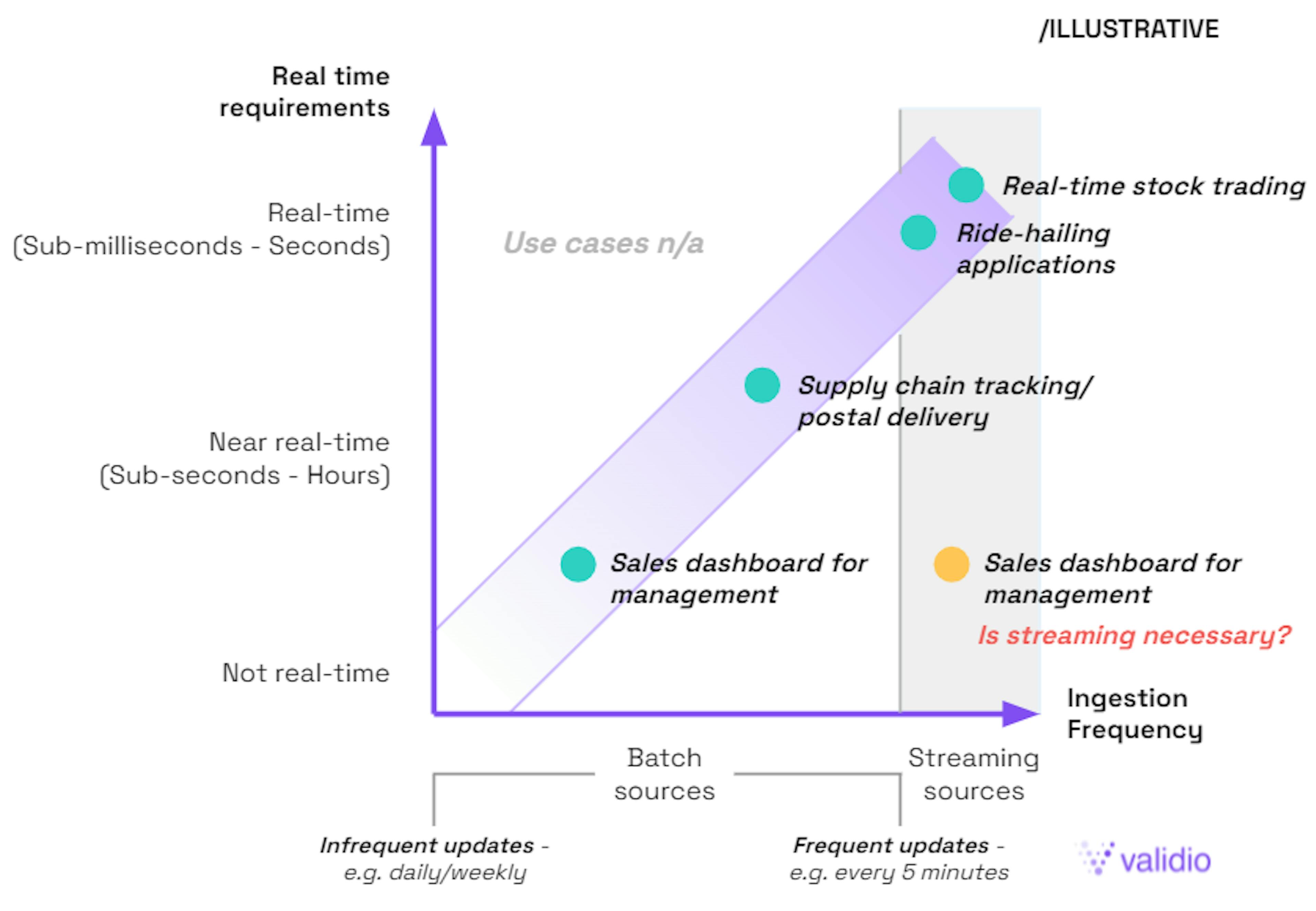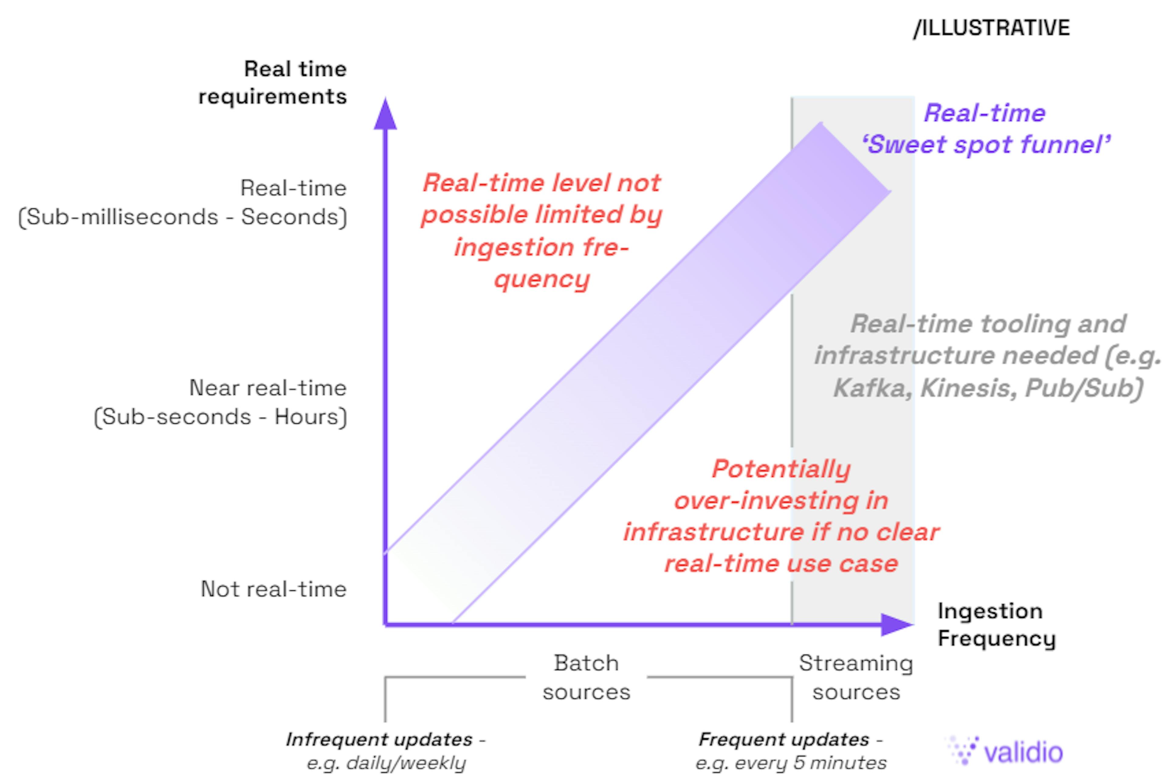 At Validio we support both data at rest (e.g. batch data pipelines / data stored in warehouses or object stores) and data in motion (e.g. streaming pipelines / real-time use cases). The majority of our customers are still working with batch data pipelines, but we see an increasing appetite for real-time / near real-time use cases and the adoption of streaming technologies such as Kafka, Kinesis and Pub/Sub to name a few. Confluent’s recent successful IPO and the rise of startups in the space (or start-ups using language including ‘real-time’) such as Clickhouse, Rockset and Materialize are all signals of how the real-time and streaming space is on the rise.