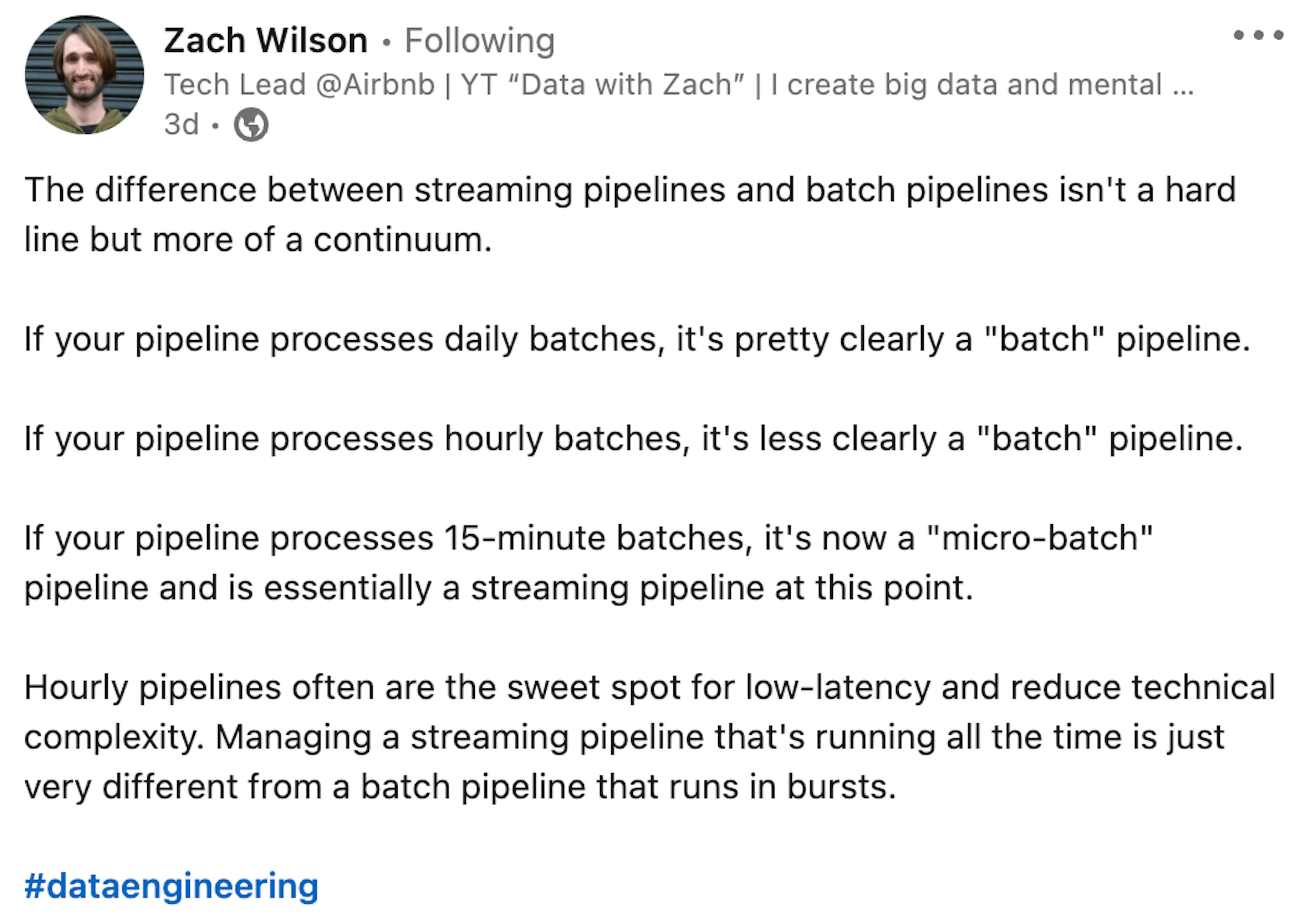 One of the major trends we see in the data space is the rise of real-time data and streaming data infrastructure — not only has it garnered a lot of attention within the data community, but the discussion around the real-time paradigm have also reached mainstream media with e.g. The Economist’s piece on ‘the real-time revolution’ and its impact on macroeconomics. While many industry experts remain bullish on the development, e.g. including real-time and streaming infrastructure in top Data Engineering trends or discussing the emergence of real-time ML in-depth, there are still ongoing discussions in the data community regarding the cost-benefit of real-time data today. A few nuggets from a recent LinkedIn thread discussing the concrete value include: