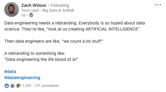 For such a critical role, we don’t think data engineers receive the love and appreciation they truly deserve. Data engineering doesn’t get the same hype or have the same number of prep programs as e.g. data science, yet it’s just as important. Many would argue that it’s much more critical today.