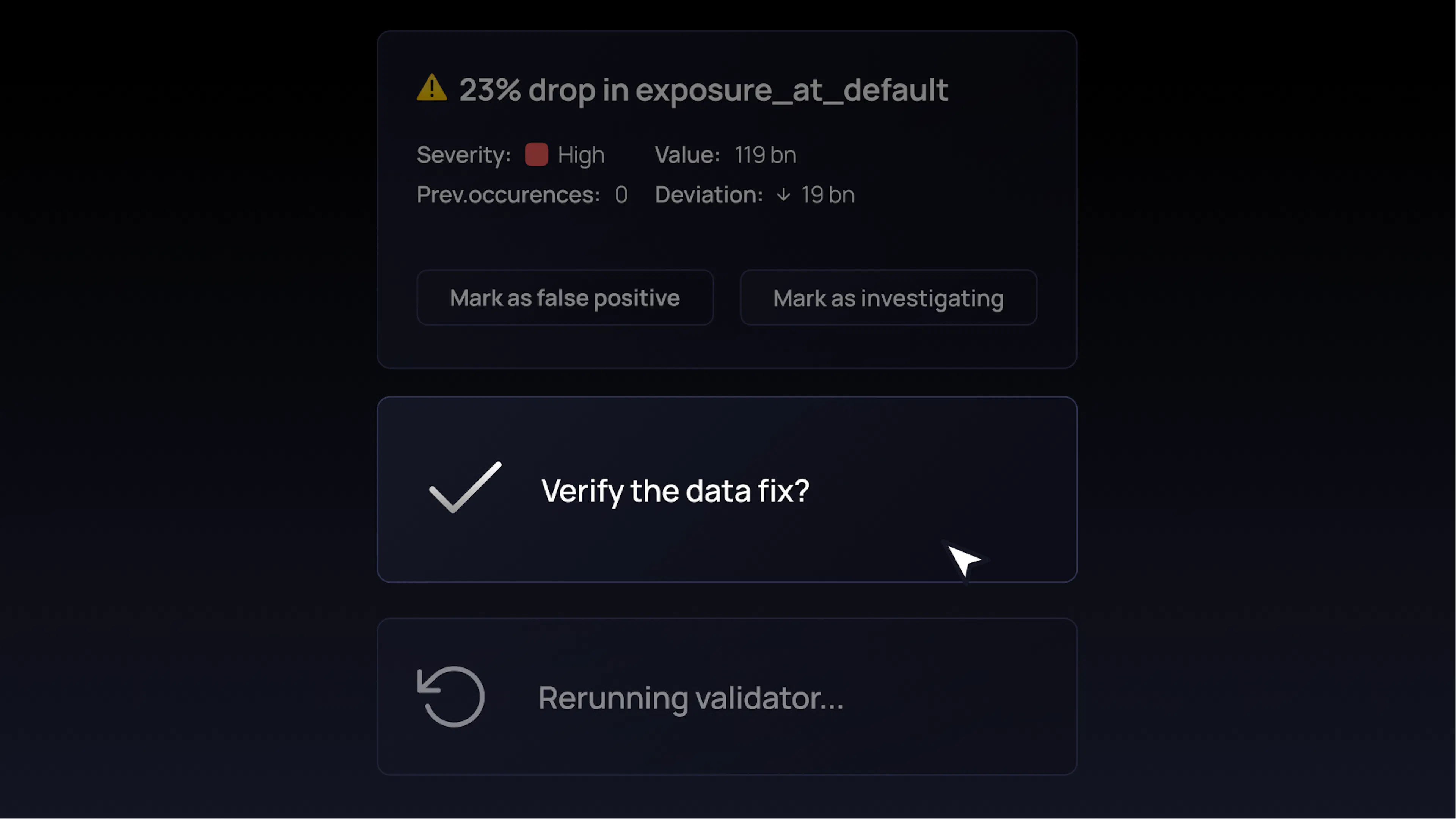 In regulated industries, this isn't a workflow inconvenience. It's a compliance failure. Banking regulations like BCBS 239 and frameworks like SOX require evidence of the full cycle: detection, remediation, and re-verification. An auditor asking "how do you know this was fixed?" needs a better answer than "we waited for the next daily run" or "we reset everything and it looks fine now."