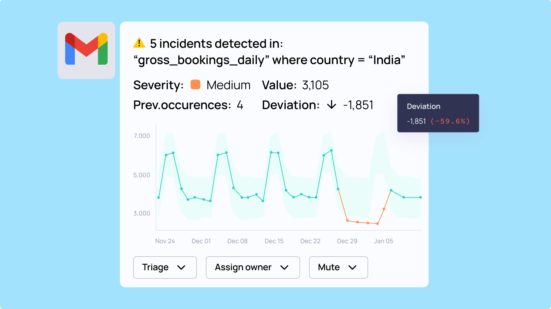 If you prefer email over chat, you can now receive the latest notifications about incidents over email. The email can include graphs or just text, and be sent directly to the stakeholder who needs to know about data issues.