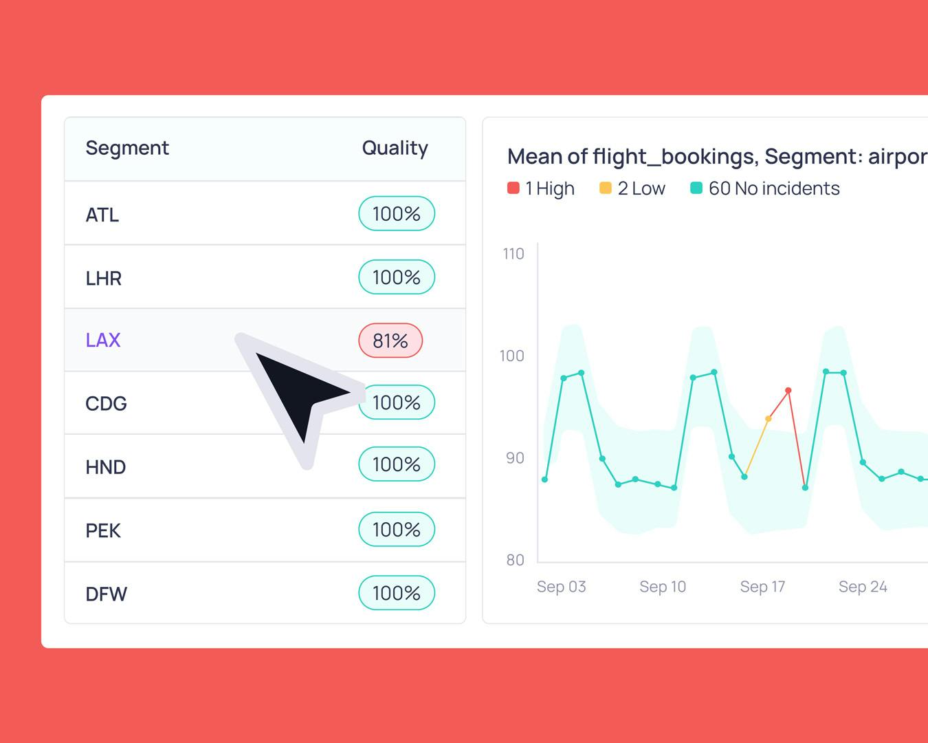 Validio dives deep into the column level of your data, from booking trends to occupancy rates. With thresholds adapted to your data patterns, we automatically uncover any anomalies that can hurt your business. Leave the anomaly detection to us, and provide the best customer experience to maximize conversion rates.