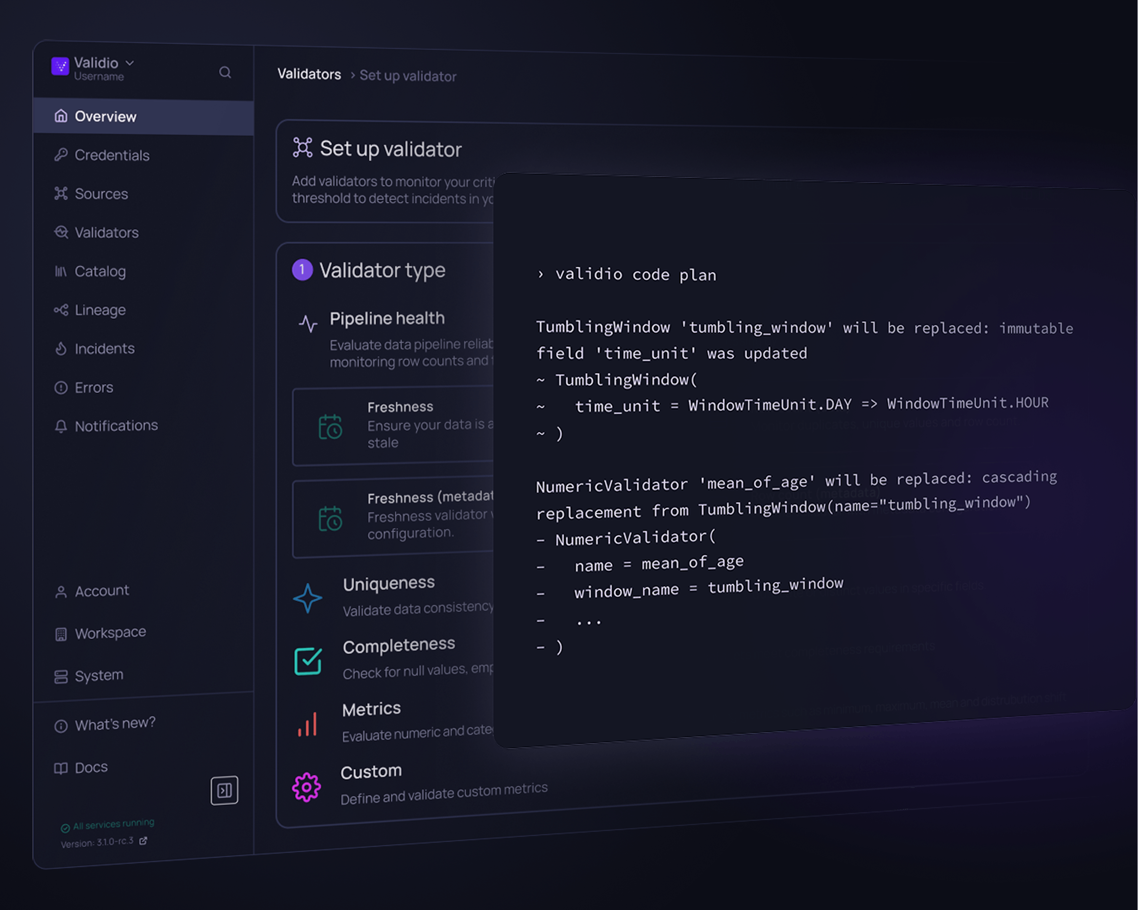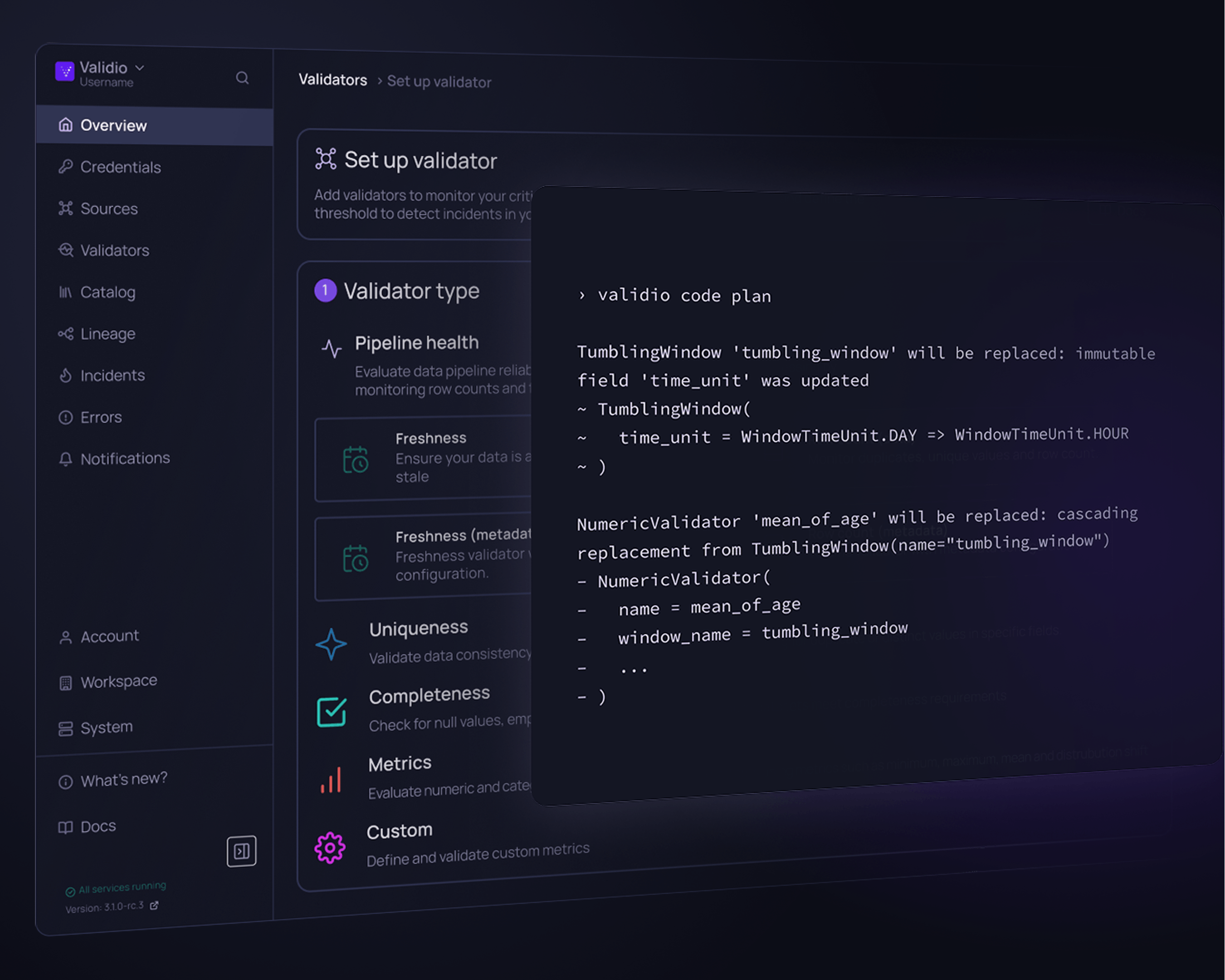 Validio integrates with every tool and service you could use in a modern data stack. And if in some incredible instance you have a tool we don’t work with - just ask and we’ll build it for you.