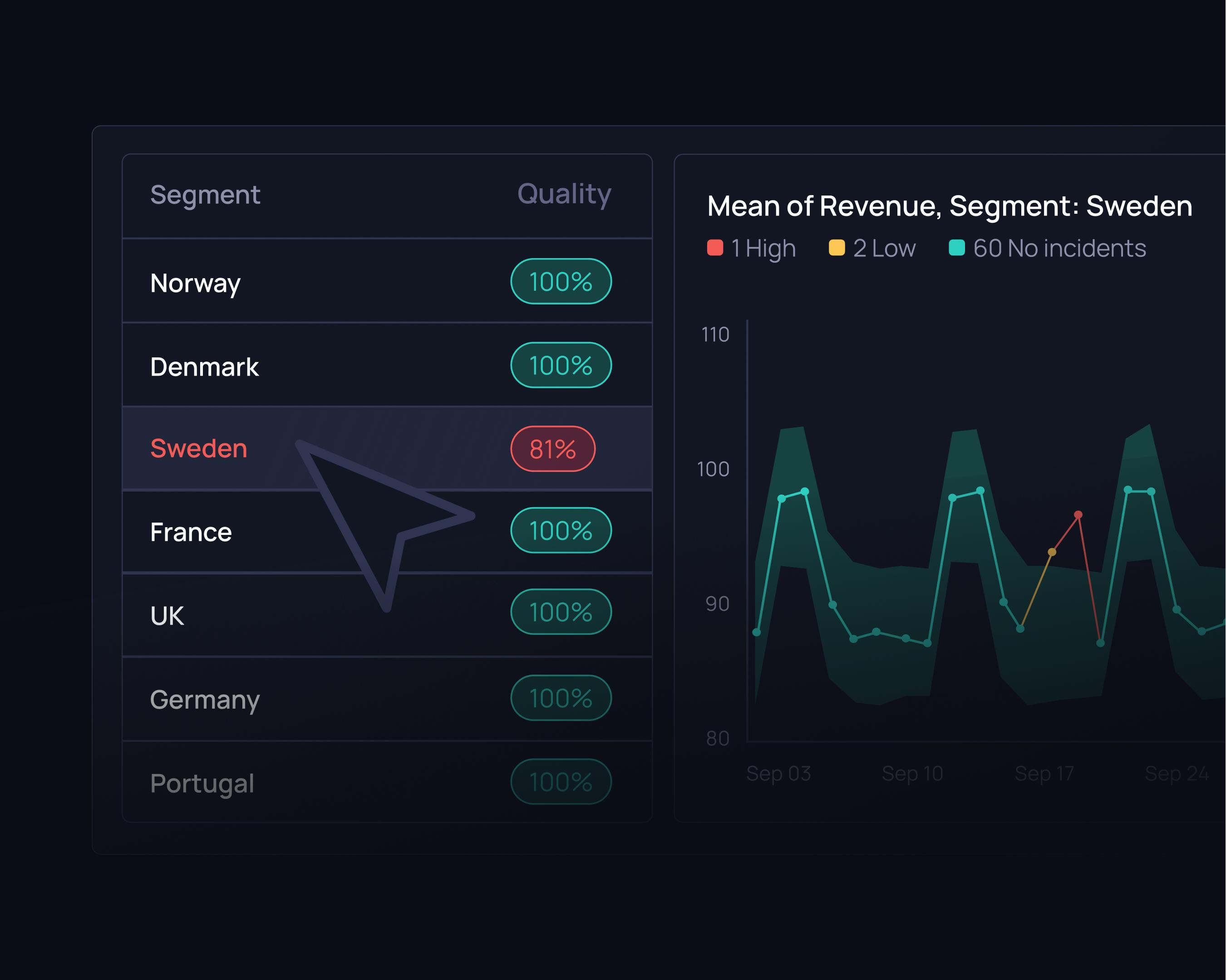 AI-powered, segmented anomaly detection reveals issues hidden in deep segments of your data.