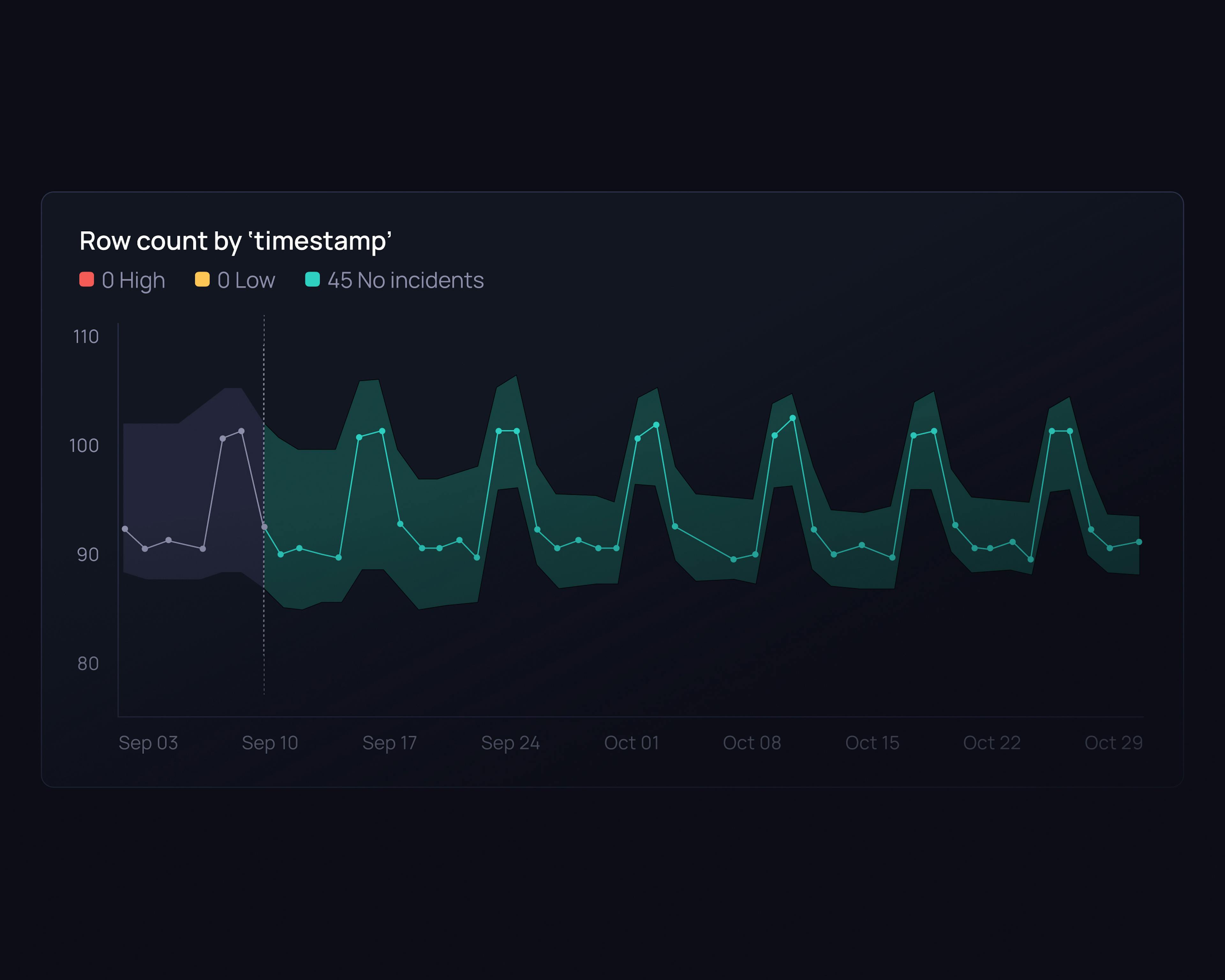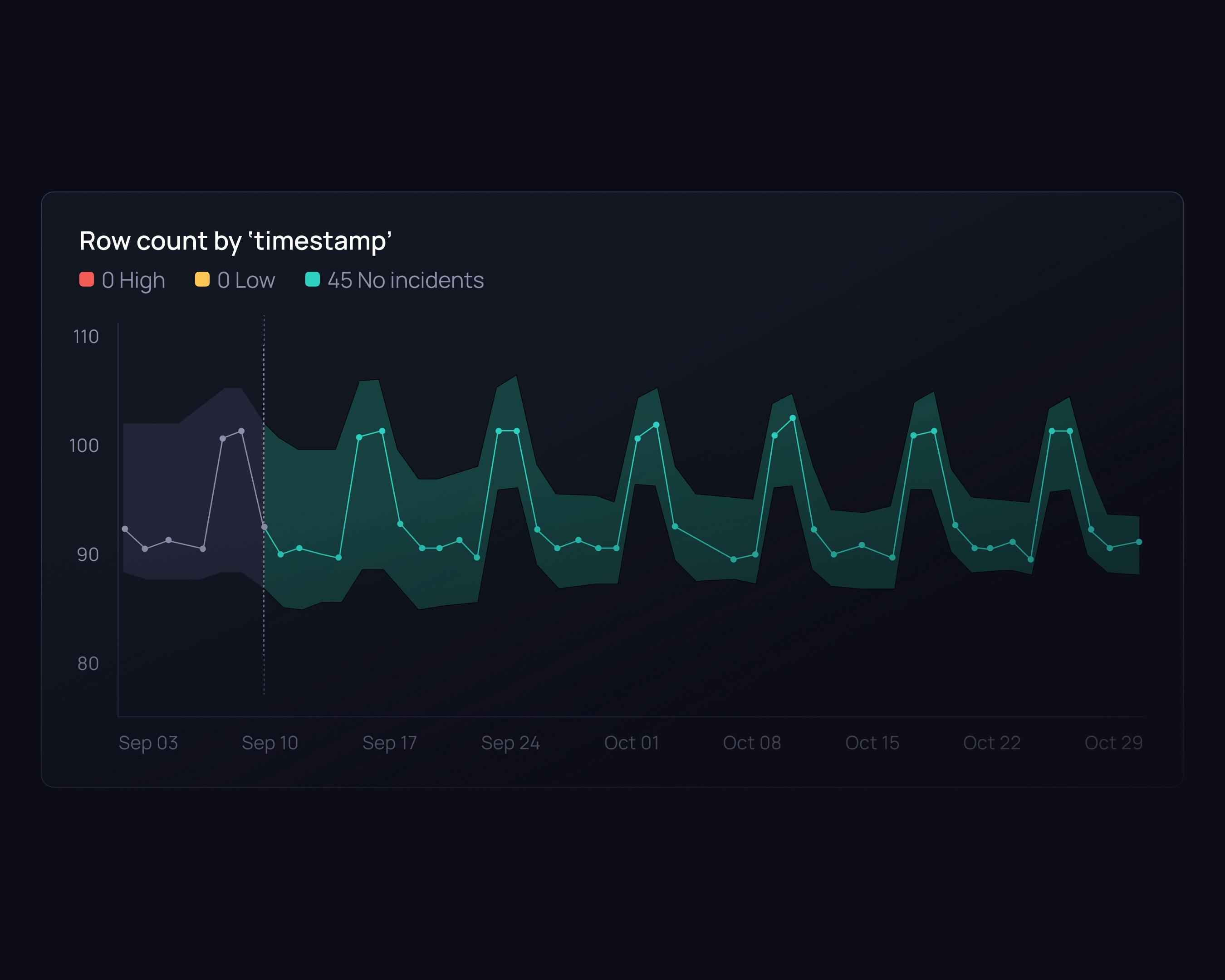With AI that learns from the underlying data patterns, taking historical seasonality into account, it's easy to scale out data quality from source to report. Let the tooling work for you, and focus on driving more value for the business.